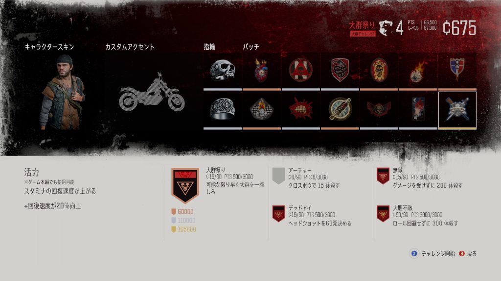 DAYS GONEチャレンジで取れるワッペンで本編のディーコンを強化できる