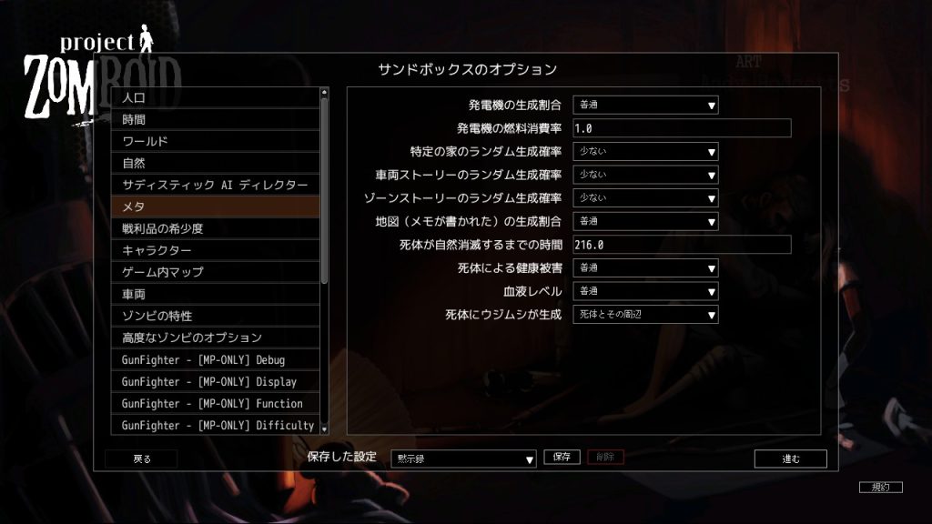 ゲーム内でのランダム要素を自分で設定してサバイバルしたり、